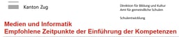 Das Curriculum zeigt den Zeitpunkt der Einführung einer Kompetenz auf sowie die fachliche Verortung. Die vorliegende Version (Juni 2020) zeigt eine für Baar angepasste Lösung aus dem Vorschlag der ZH-dreimaldrei sowie den OSKIN-Empfehlungen. Diese sind beide weiter unten abgelegt.