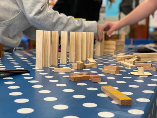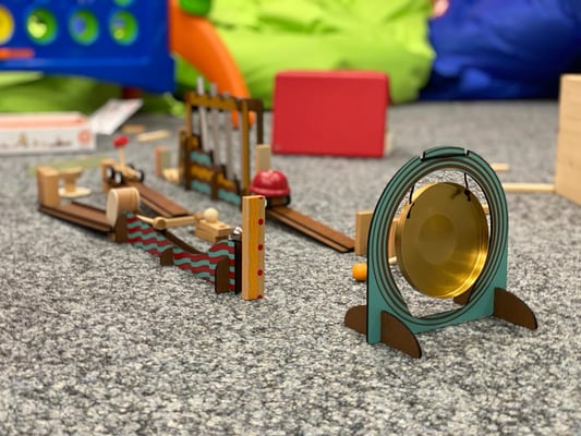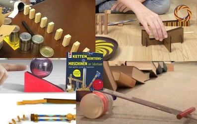 Aus Kapla, Büchern, Lego und weiteren Makermaterialien konstruieren wir eine coole Kettenreaktion und filmen das Ergebnis.