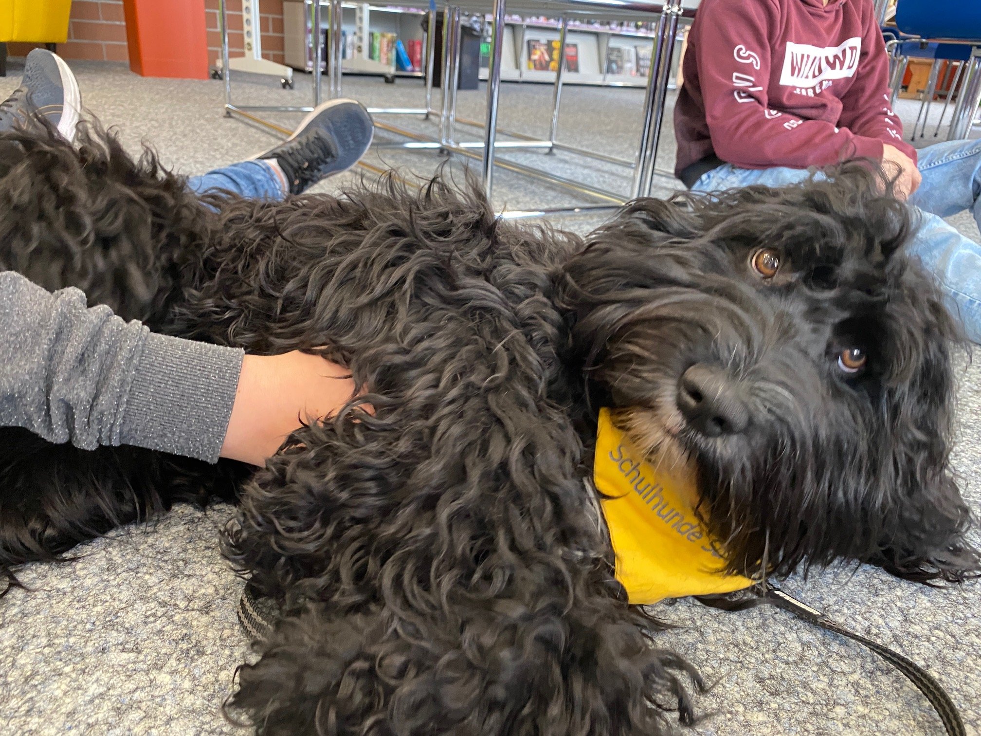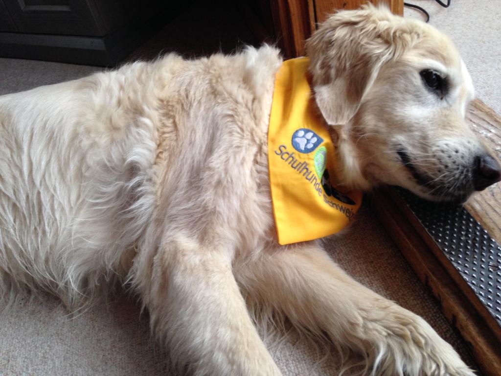 Am 26. Mai 2021 hat Merlin seine Ausbildung mit einer Prüfung abgeschlossen und ein Zertifikat erhalten. Zahlreiche Schülerinnen, Schüler und Lehrpersonen haben ihn auf seinem Weg vom Welpen zum Schulhund begleitet und uns beim Training unterstützt. Vielen Dank!