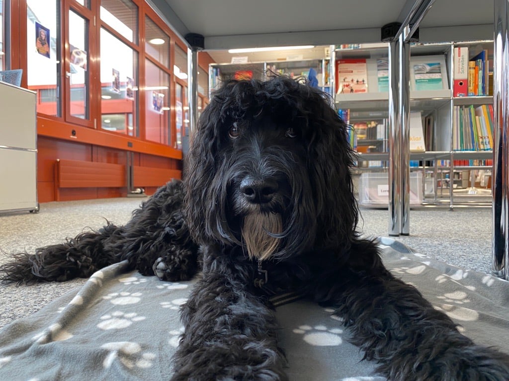 Ab Dezember 2019 kommt Merlin, ein Barbet-Welpe schon ab und zu mal Schulhausluft schnuppern. Die Vorfreude ist gross!